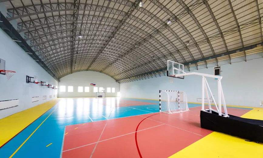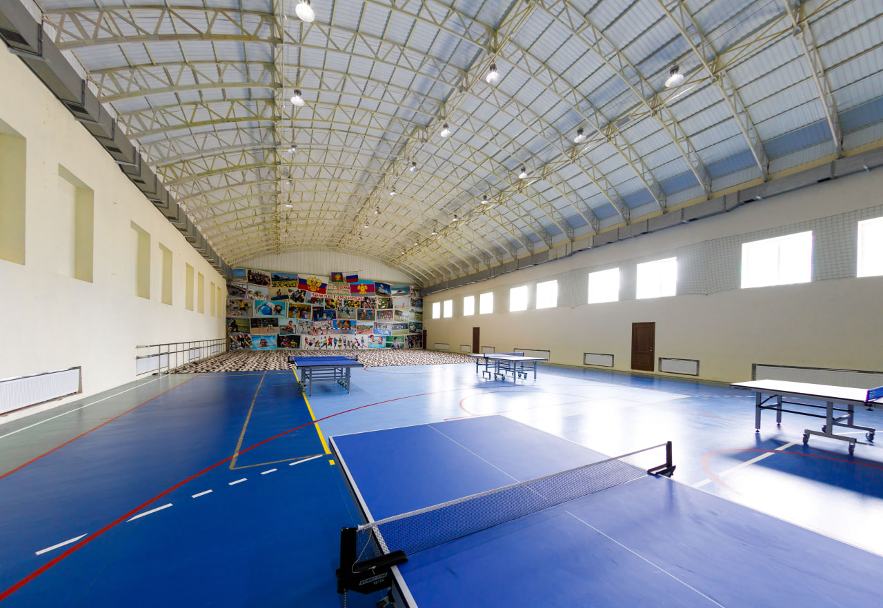 - профессиональная спортивная инфраструктура: 2 спортивных зала: 36 х 18 ( высота 10 м.) и новый спортзал 49 х 26 ( высота 15 м.). Спортзалы международного стандарта, разметка, специальное спортивное покрытие ( polisport - teraflex)