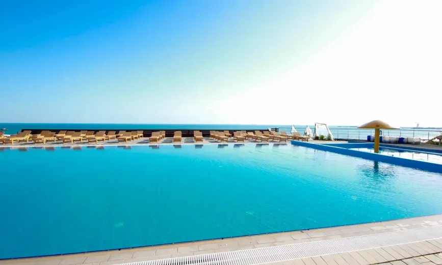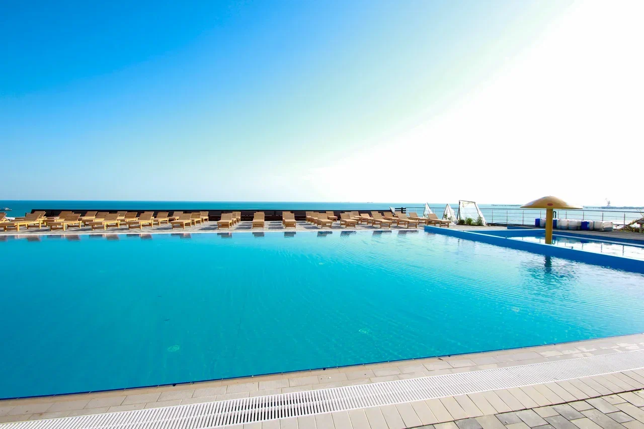 - открытый с подогревом бассейн 25 метров, три дорожки для плавания и отдельная зона для SUP-серфинга