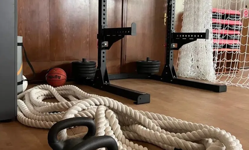 - Многофункциональный спортивный зал 27,5 м * 16 м* 11 м, оборудован силовыми и кардио тренажёрами.