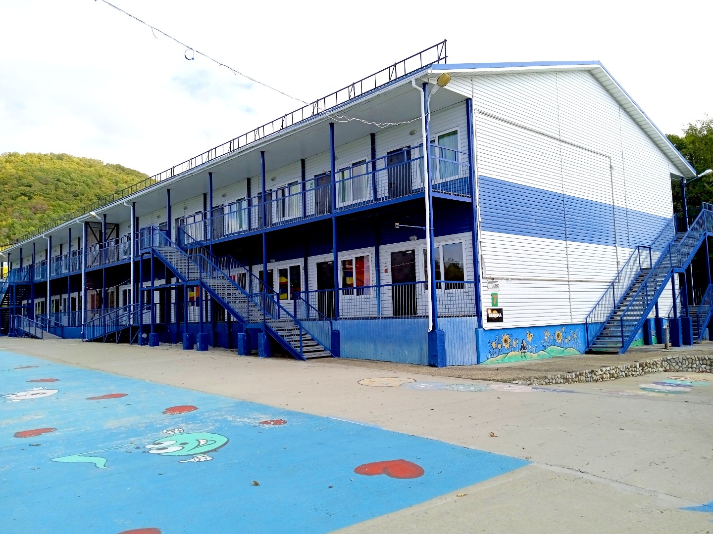 В благоустроенных корпусах современного уровня комфорта с 4-х и 6-ти местными номерами, с видом на море, с индивидуальными душевыми и санузлами, оборудованных современной санитарной и душевой техникой. Просторные комнаты обставлены новой мебелью – кровати с новыми матрасами, тумбочки, индивидуальный шкаф для вещей.