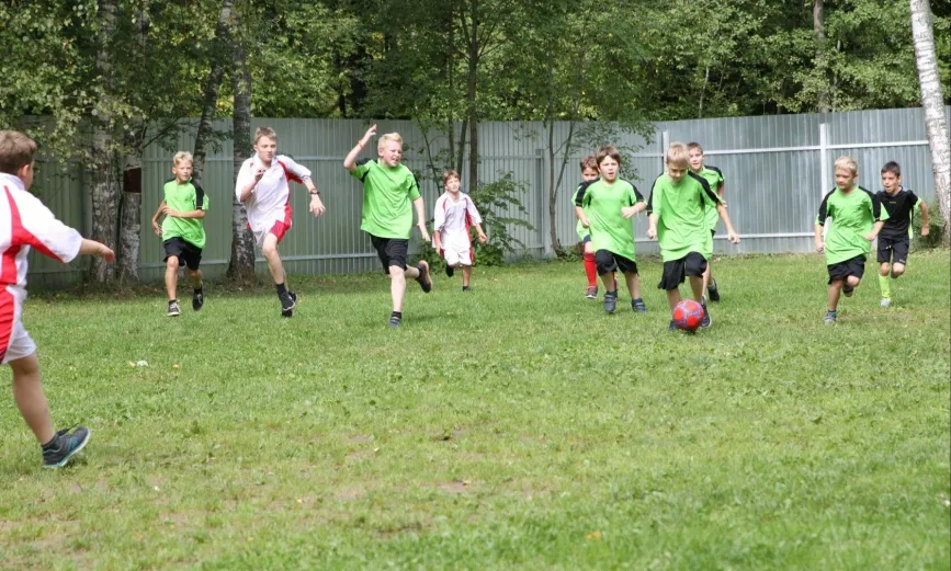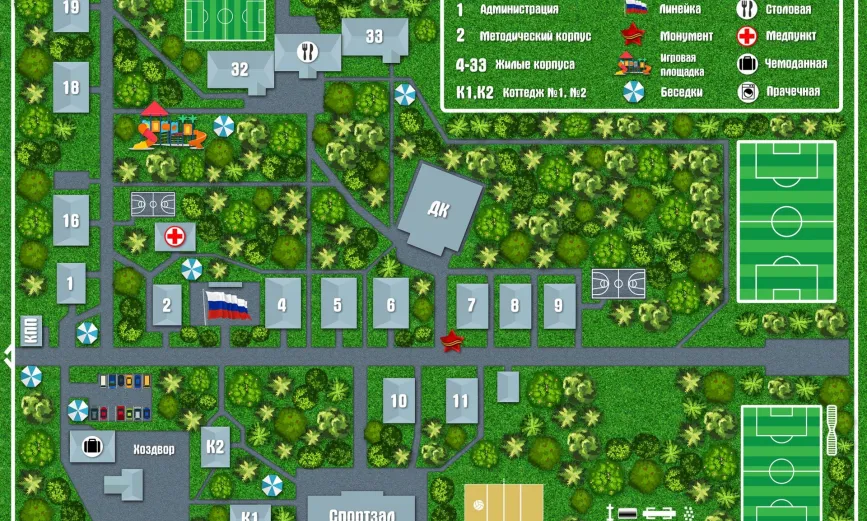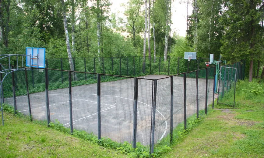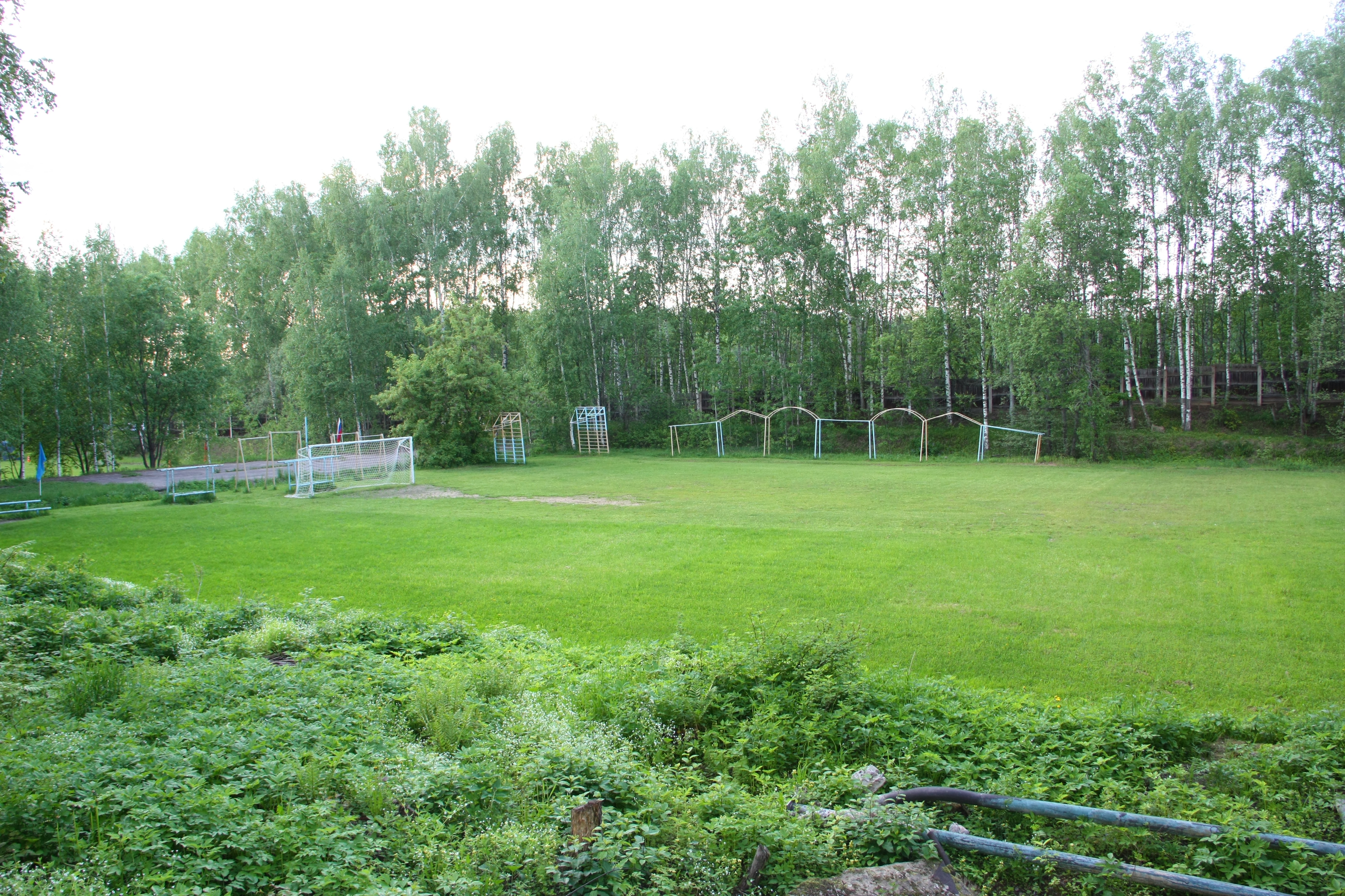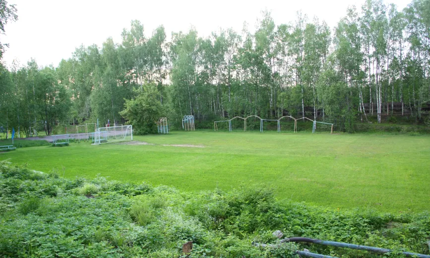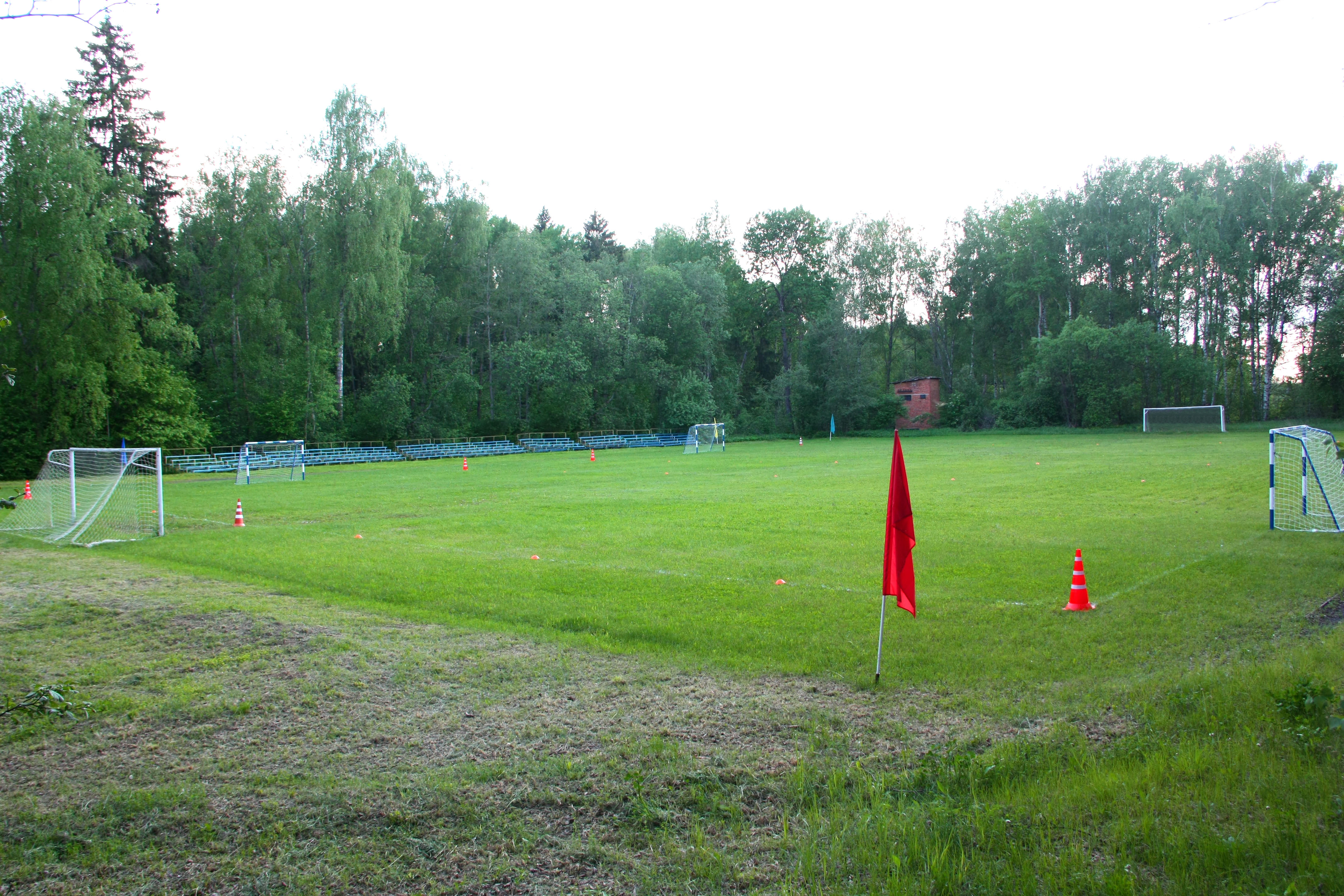 - 2 футбольных поля — 50 м*80 м, 60 м*30 м, натуральный газон, трибуны,