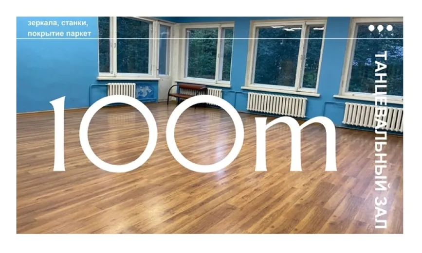 - Зал для танцев 17 м * 17 м, хореографии 10 м* 10 м, зеркала, станки, покрытие паркет,